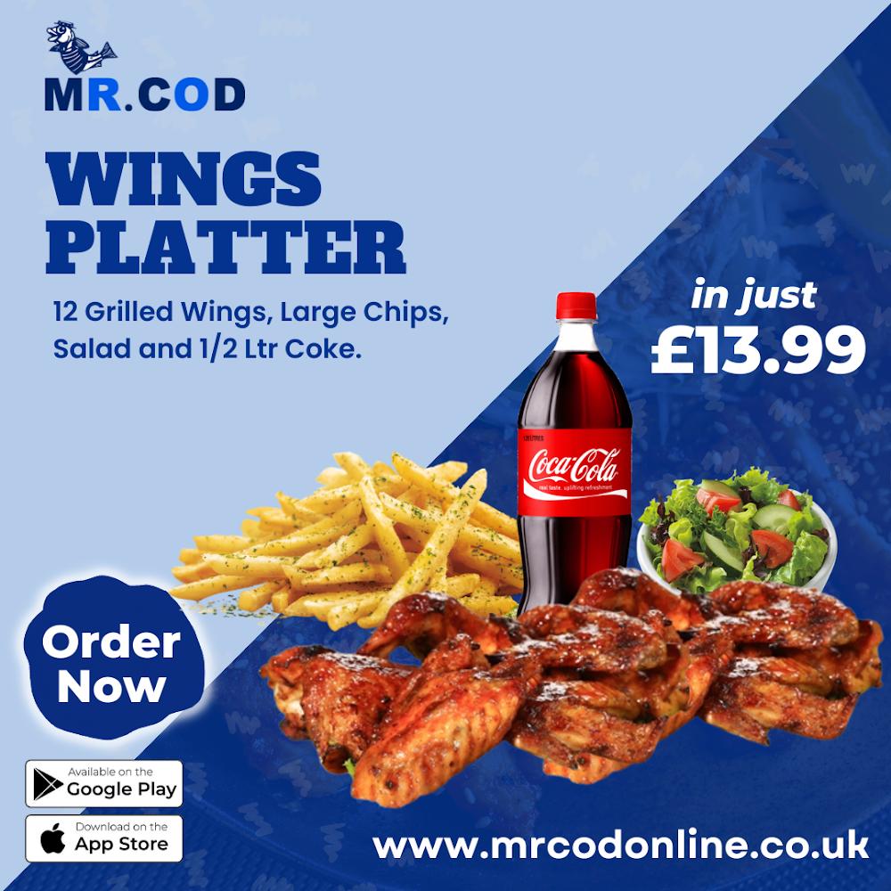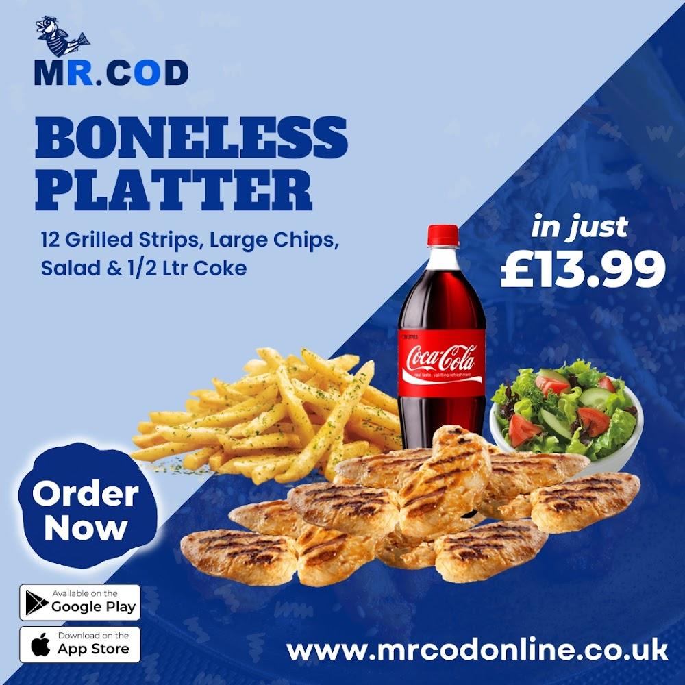 The menu at Mr Cod is a treasure trove of delectable fish and chip favorites and other fast-food delights. The 'Just Fish' category features options like regular cod, large cod, meaty haddock, and masala fish, ensuring a flavorful base for fish enthusiasts. For those craving something extra, the 'Chicken' section shines, with choices ranging from burgers to chicken wings in varying quantities, including unique flavors like Korean Chaos and Wild Buffalo. Families will appreciate the kid-friendly menu, offering mini meals that appeal to younger taste buds. Meal deals provide excellent value, combining fish dinners with chips, or showcasing hearty chicken meals tailored for maximum satisfaction. There’s something for everyone on this menu, which prides itself on freshness, with ingredients sourced locally whenever possible.